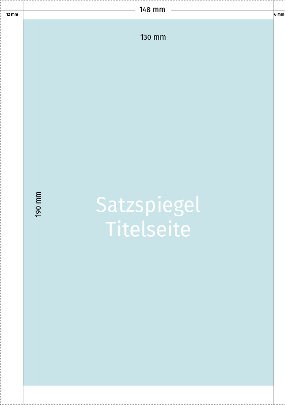Bitte berücksichtigen Sie bei der Anlieferung eigener Dateien den Satzspiegel (130 x 190 mm). Falls sie formatfüllende Hintergrundbilder einsetzen möchten, benötigen wir eine Beschnittzugabe von 3 mm umlaufend. Ein Klick auf die Vorschaubilder führt zu PDF-Dateien zum Download.